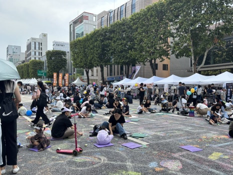 반포대로 한복판에서 시민들이 분필로 자유롭게 그림과 글씨를 그릴 수 있는 프로그램인데요,