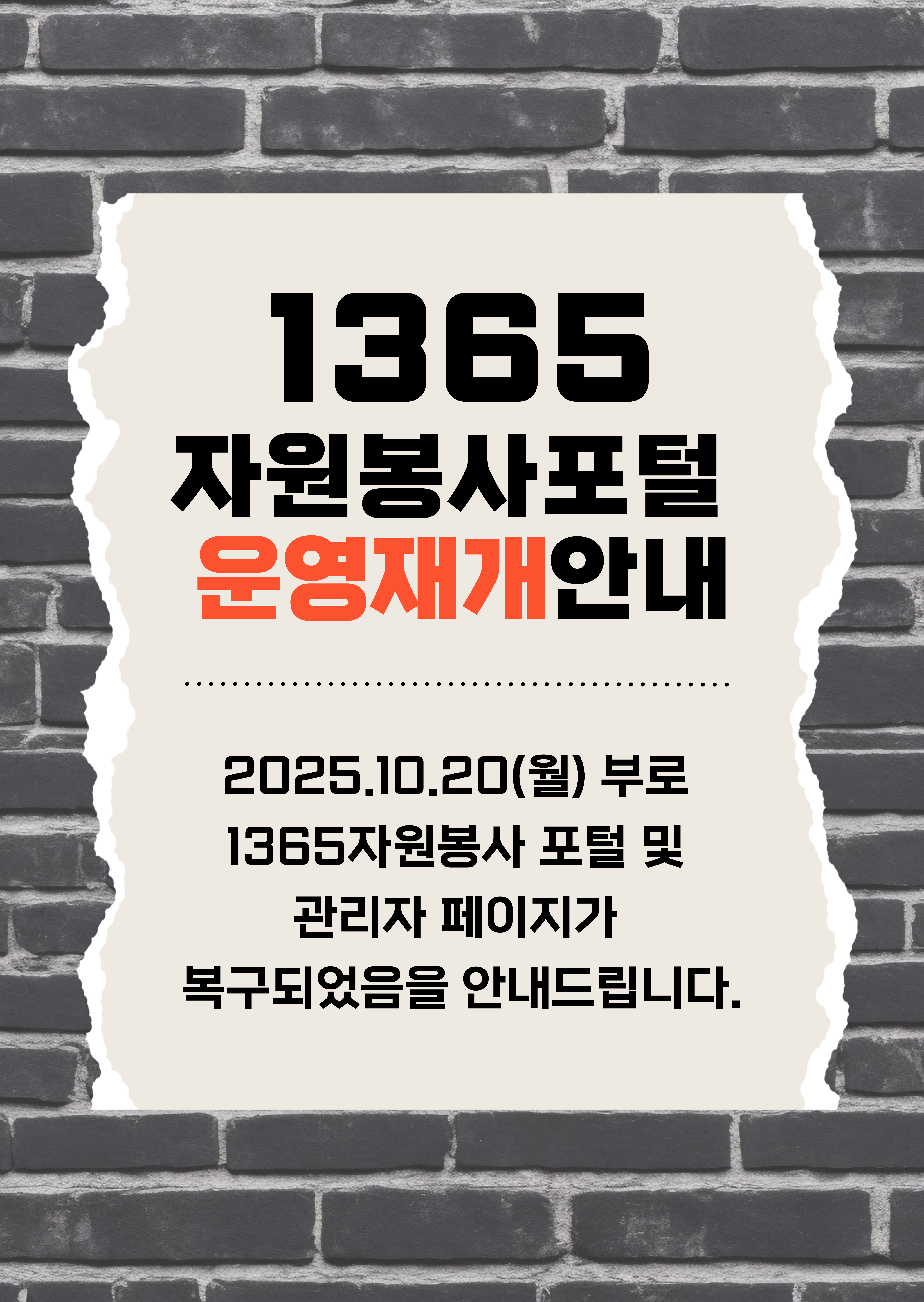 카테고리 없음 [공지]1365자원봉사포털 운영재개 2025. 10. 20. 공유하기 게시글 관리 언제나 함께 하고 싶은 최고의 자원봉사 파트너! 서초구자원봉사센터 저작자표시 비영리 변경금지 (새창열림)