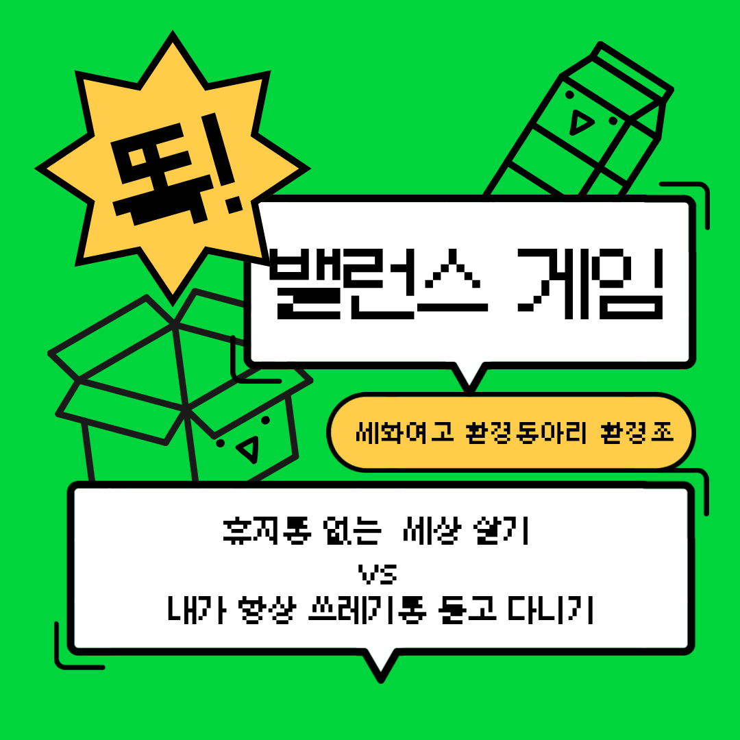 '환경'조는 축제에서 밸런스 게임을 진행하며 쓰레기 문제에 대한 인식을 재밌게 끌어올리고자 했습니다.