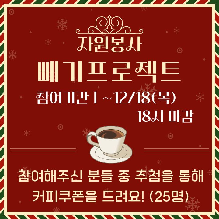 참여하신 분들 중 추첨을 통해 25분께 따뜻한 커피쿠폰을 전달드릴 예정입니다!