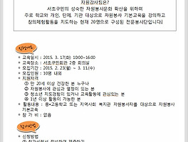 알립니다 썸네일형 리스트형 제목 날짜 [신문]서초매거진_강기현 자원봉사자 릴레이 인터뷰 - 3rd 2015. 3. 14. [신문]서초매거진_이용희 자원봉사자 릴레이 인터뷰 - 1st 2015. 3. 14. [모집]자원봉사 플래너 프로젝트 리더 모집 2015. 3. 12. [모집]키친가든 시즌 2 참가신청 2015. 3. 11. [신문]조선일보_음악으로 행복을 전하는 박은영 자원봉사자 2015. 2. 26. 2015년 자원강사 신규회원 모집 2015. 2. 25. [모집]자원강사팀 자원봉사 교육강사 신규회원 모집 2015. 2. 25. 새해 복 많이 받으세요 2015. 2. 14. 1이전 1 ··· 143 144 145 146 147 148 149 ··· 160 다음